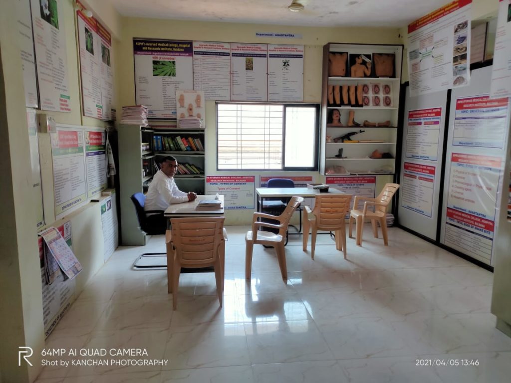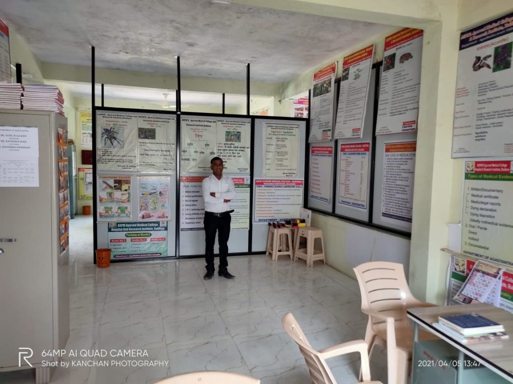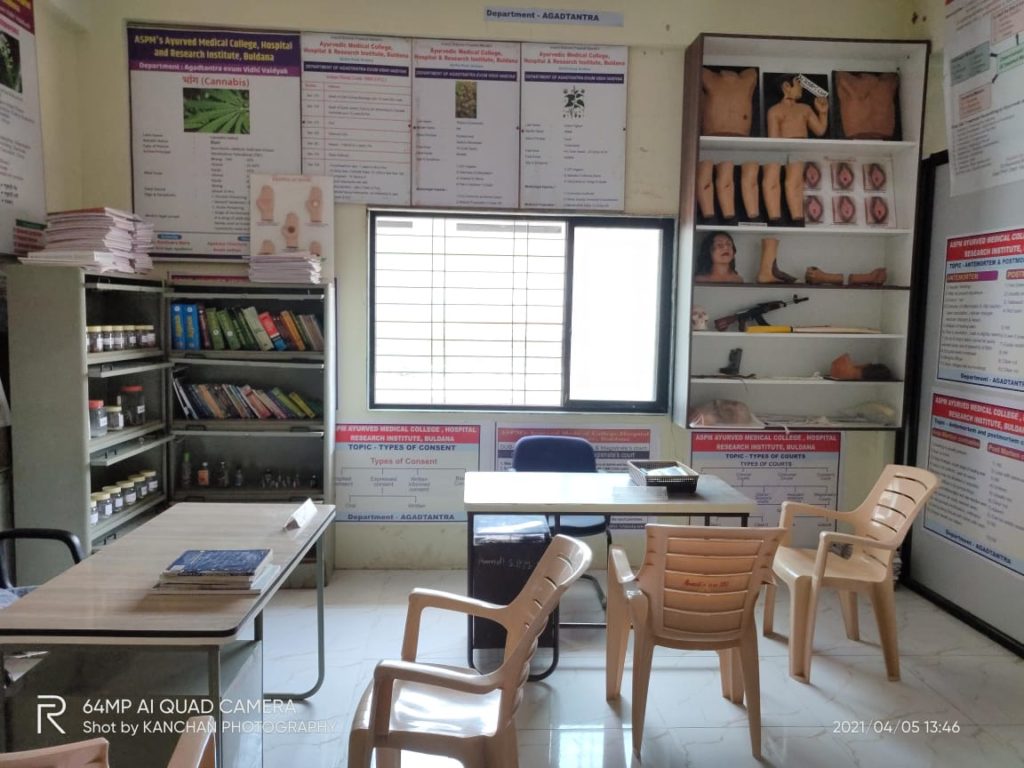 Agadtantra is one of the eight branch of Ayurveda which deals with toxicology, forensic medicine and medical jurisprudence. The department boast of well developed museum displaying specimen, chart, models and weapon regarding to forensic medicine and toxicology. The department is having well established infrastructure and offers clinical database knowledge to our beloved students.