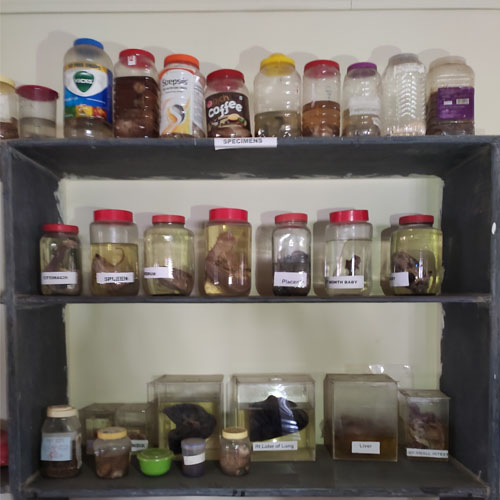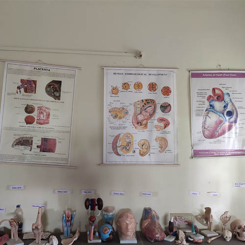 Our department having well equipped departmental library ,museum , dissection hall ,specimens, mummified body, models having charts of all body systems like digestive system, reproductive system, respiratory system.Also various projects of rachana sharir created by students.